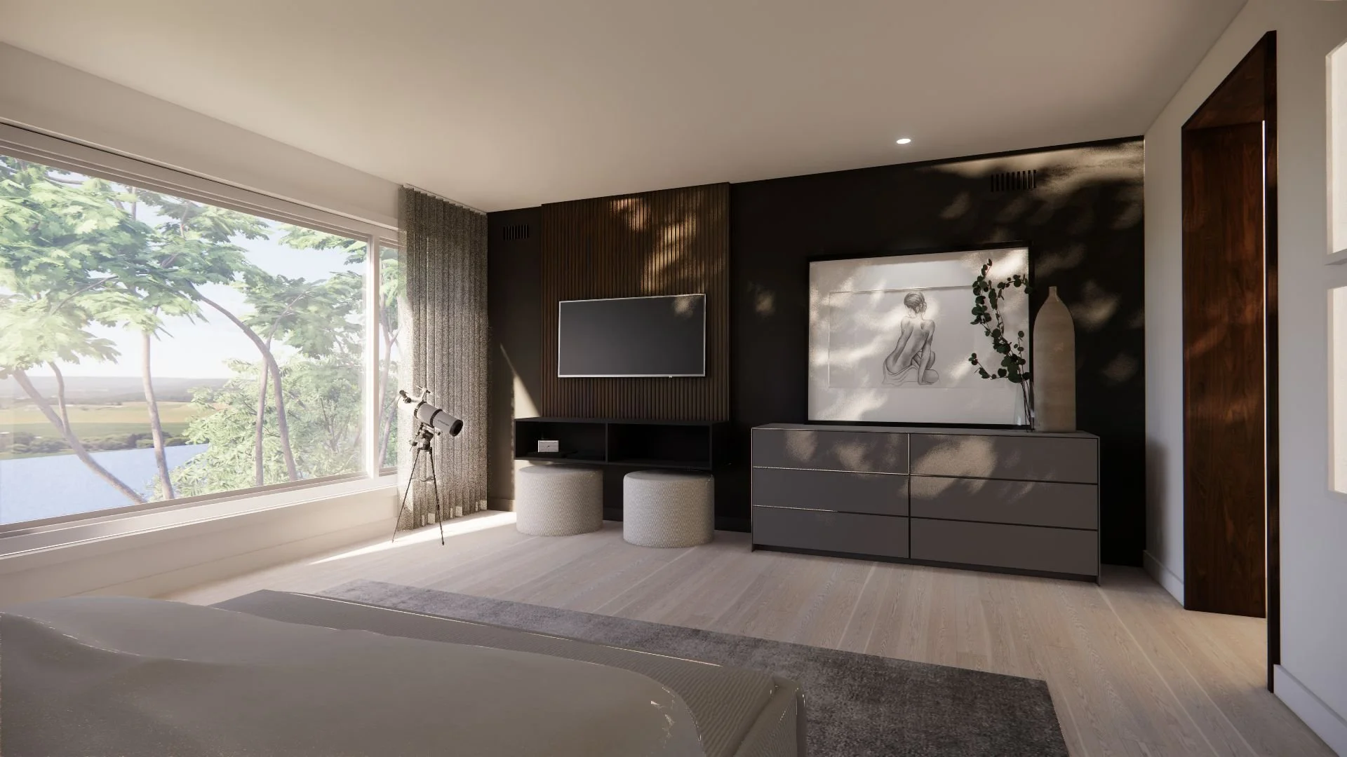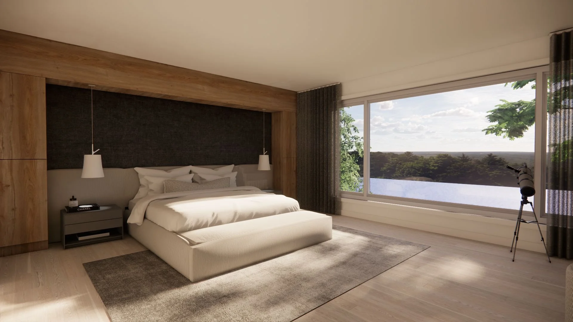 L’idée principale derrière le concept était de mettre en valeur la vue sur le fleuve et de créer un lieu chaleureux, invitant à la détente. Les espaces privés ont été pensés comme des refuges paisibles où la lumière naturelle, les matériaux doux et les teintes neutres s’unissent pour instaurer une ambiance apaisante. Chaque détail contribue à faire de ces pièces des endroits à la fois intimes et raffinés, propices au repos.
