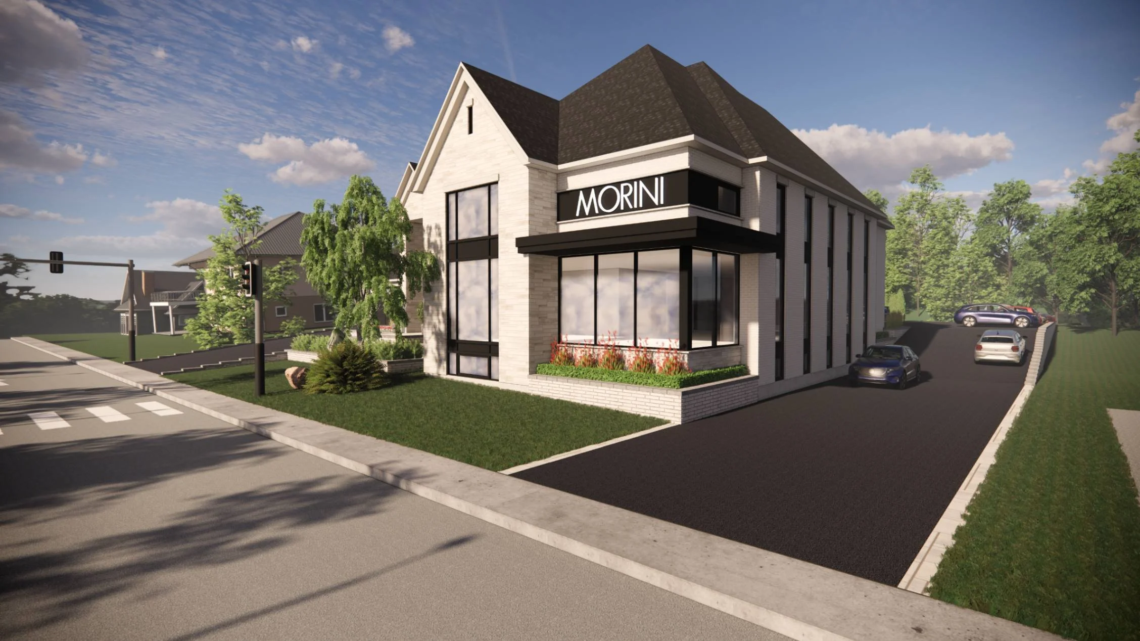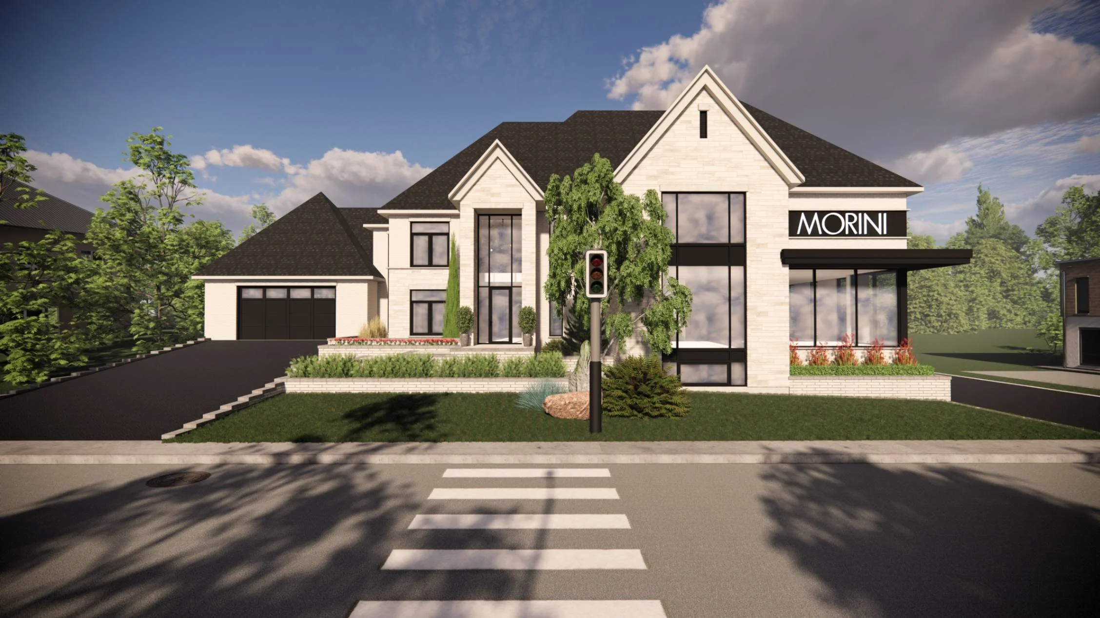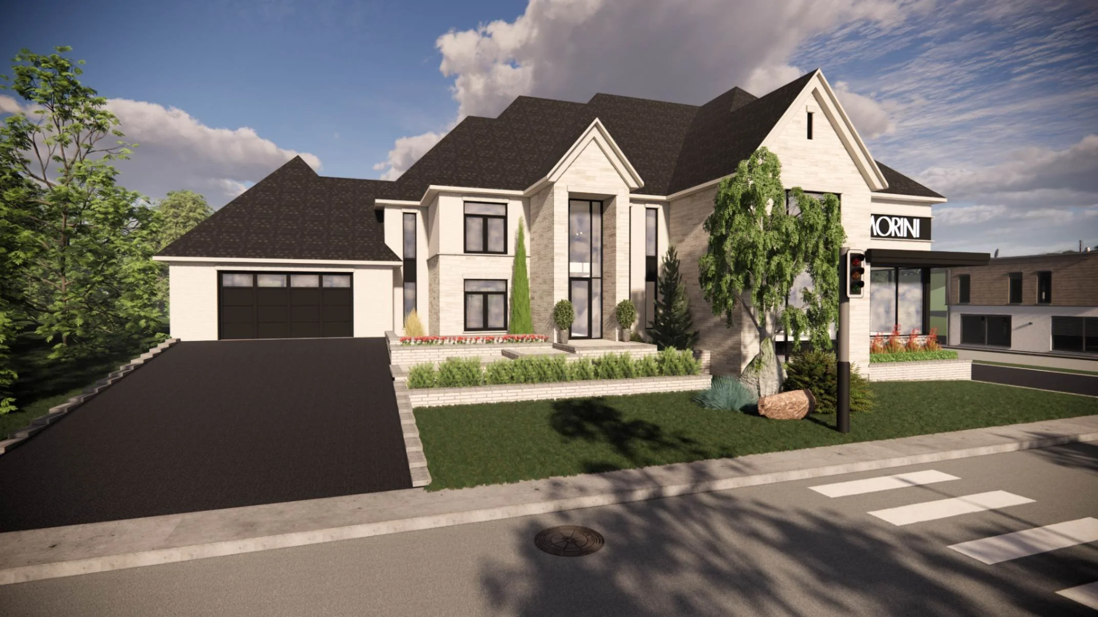 Cette approche réfléchie permet de relier les zones commerciales et résidentielles dans une continuité visuelle harmonieuse, tout en préservant à chacune son identité propre et une fluidité naturelle entre les deux sections.