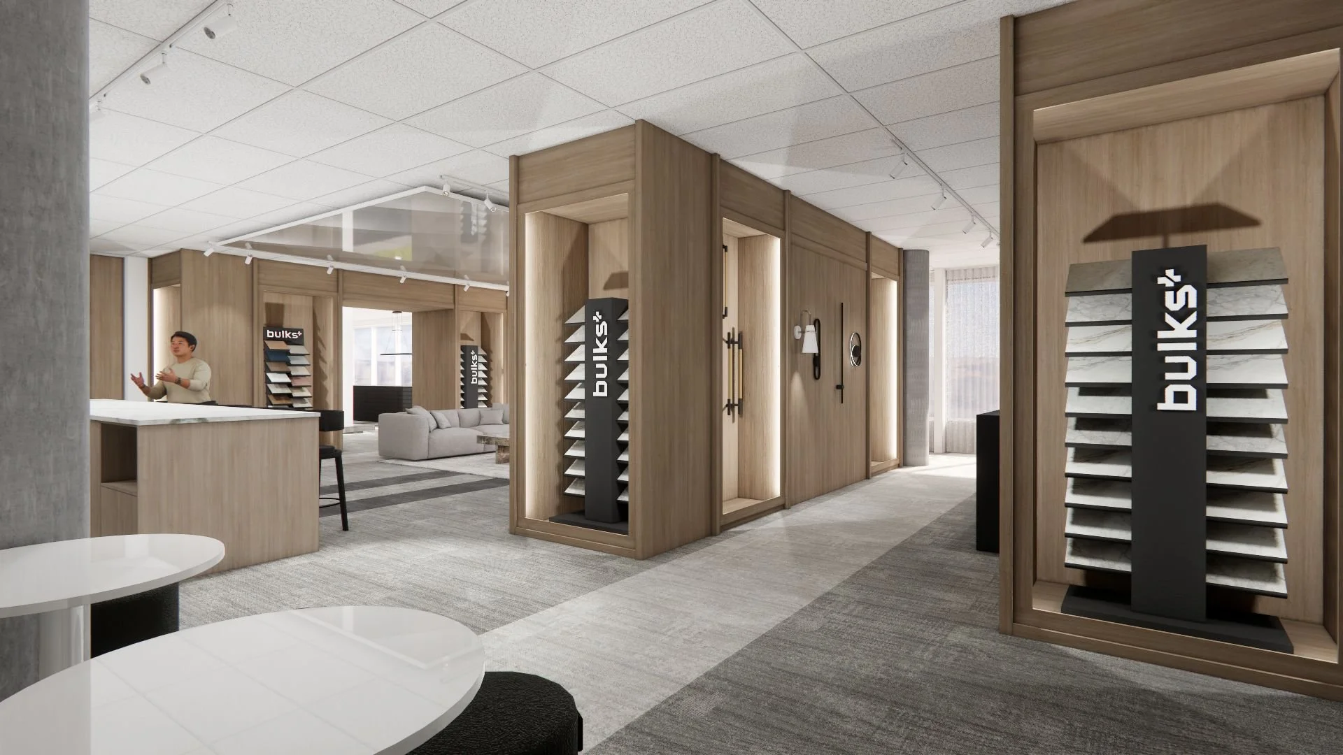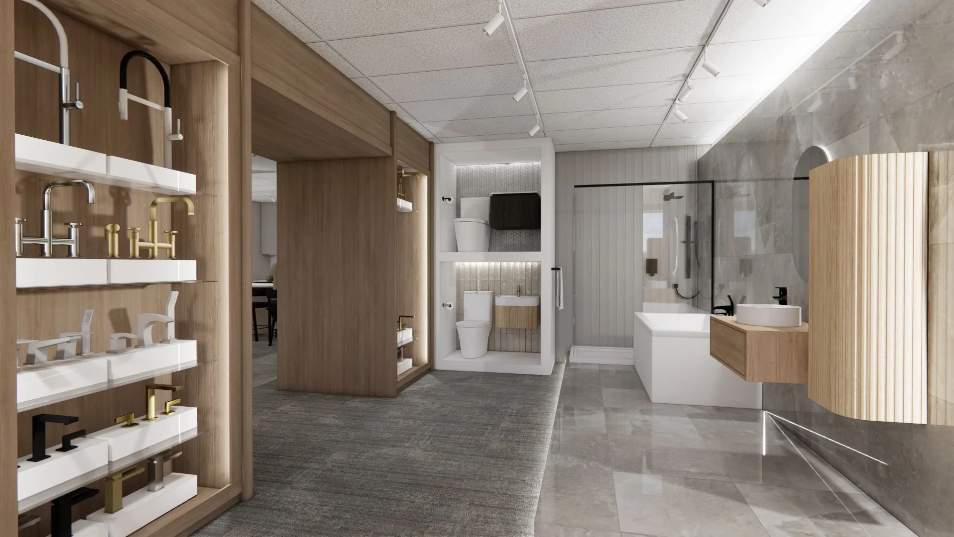 Ce local existant nécessitait une réflexion approfondie pour accueillir une salle de montre au look raffiné. Notre défi était de présenter un maximum d’éléments comme les matériaux, la quincaillerie, les luminaires et les sanitaires, tout en préservant l’essence initiale de l’espace. Nous avons travaillé l’organisation, les contrastes et la cohérence visuelle afin d’offrir un lieu clair, structuré et représentatif de la qualité des produits exposés, sans jamais surcharger l’environnement.