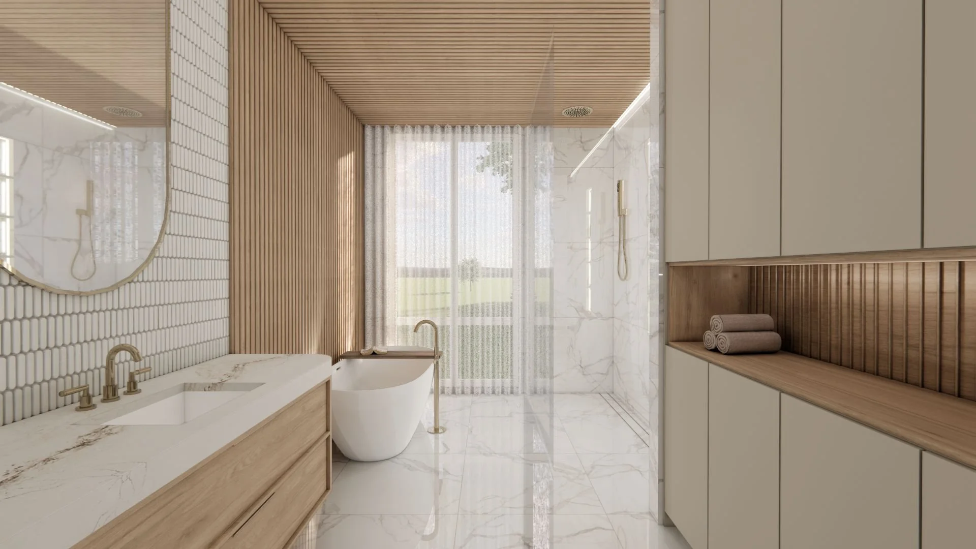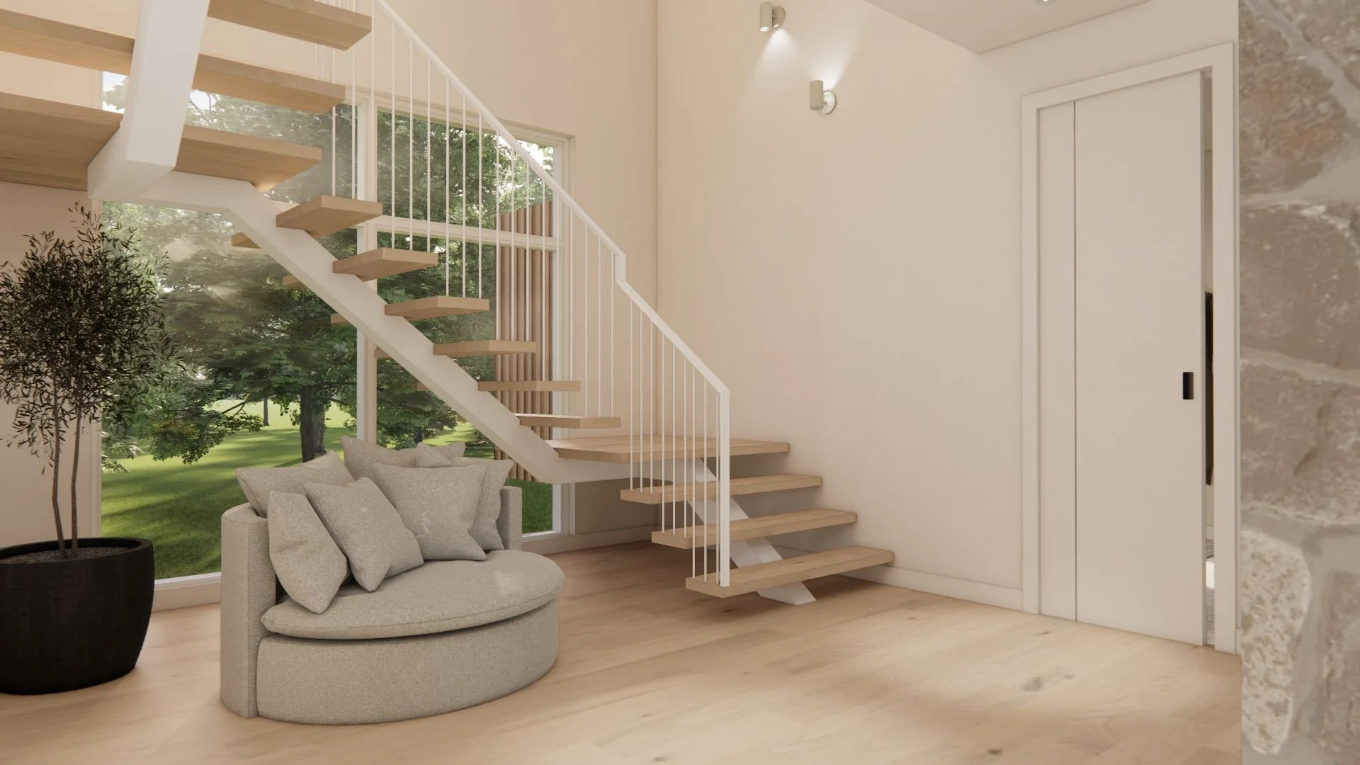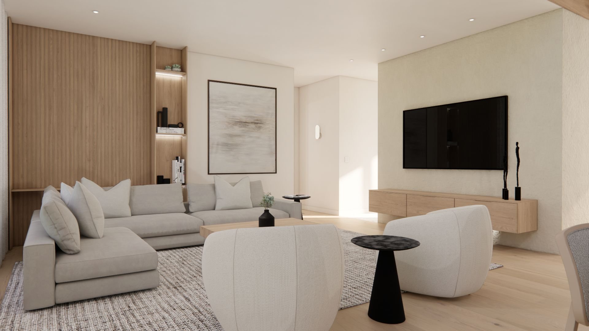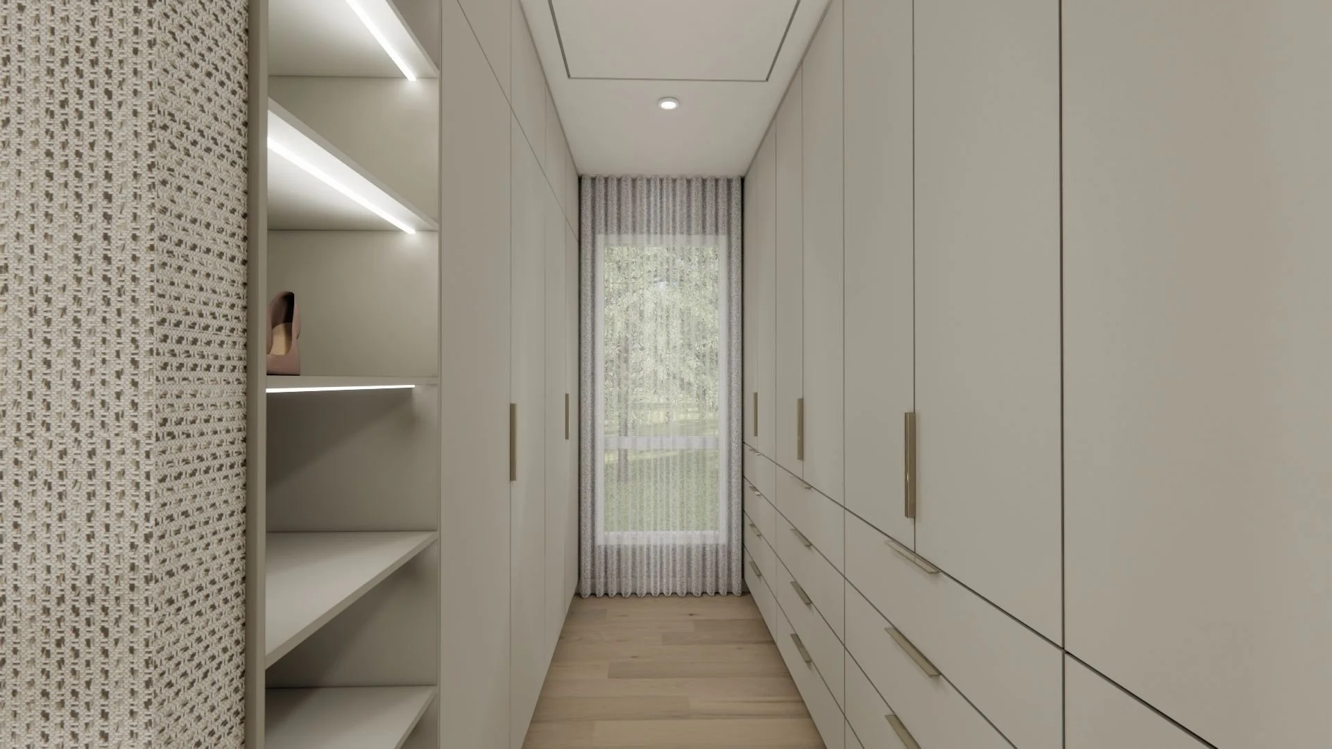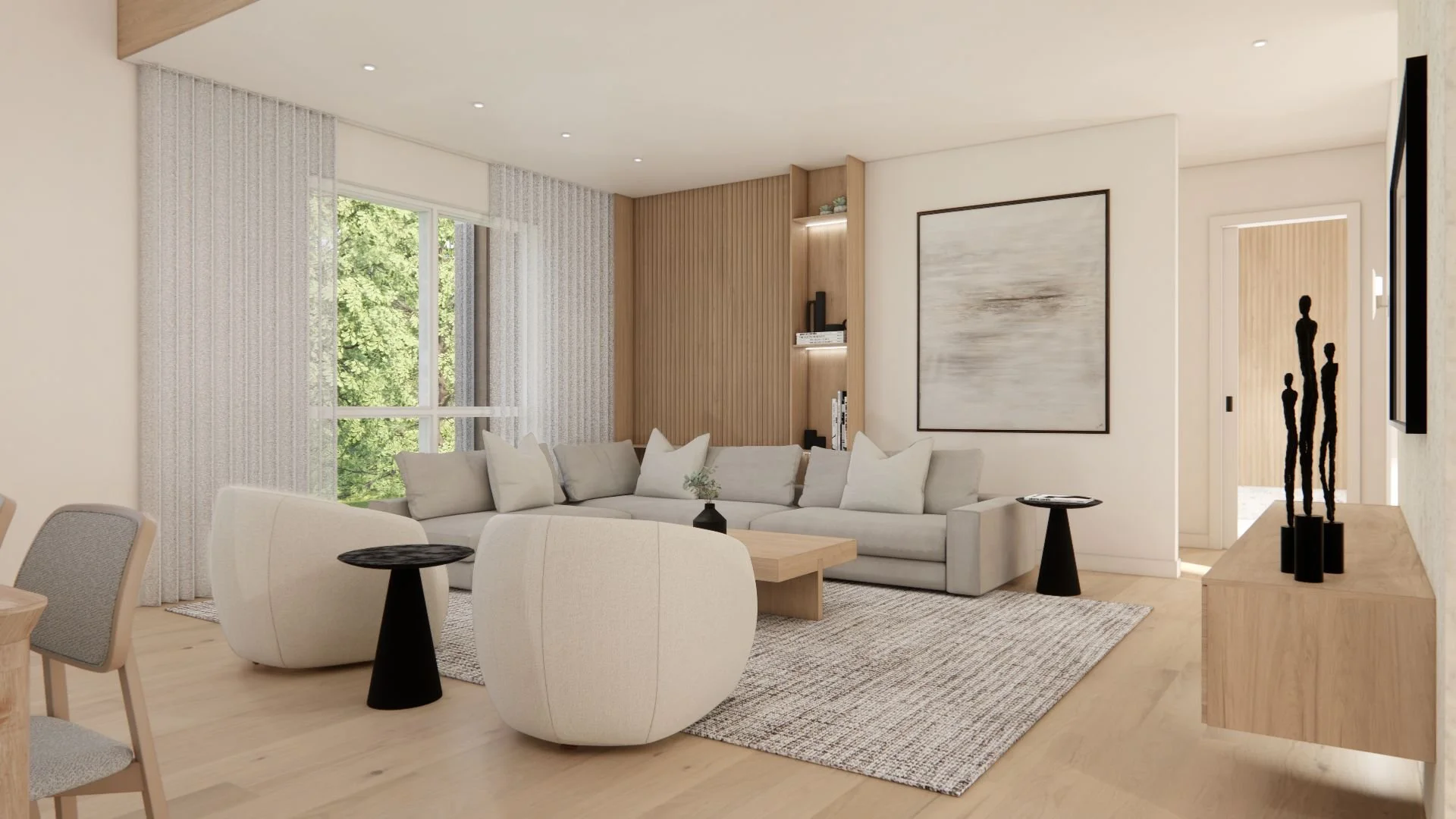 La cliente souhaitait un espace lumineux où la lumière naturelle se déploie généreusement à travers de grandes fenêtres. Chaque pièce a été pensée pour respirer la sérénité, grâce à des textures naturelles, des finis mats et une palette de tons neutres qui invitent au calme et au bien-être.