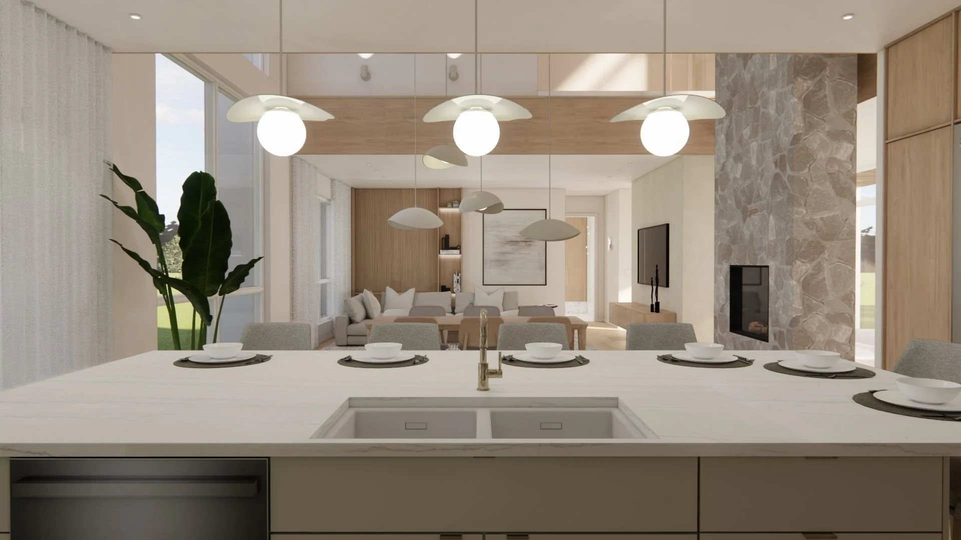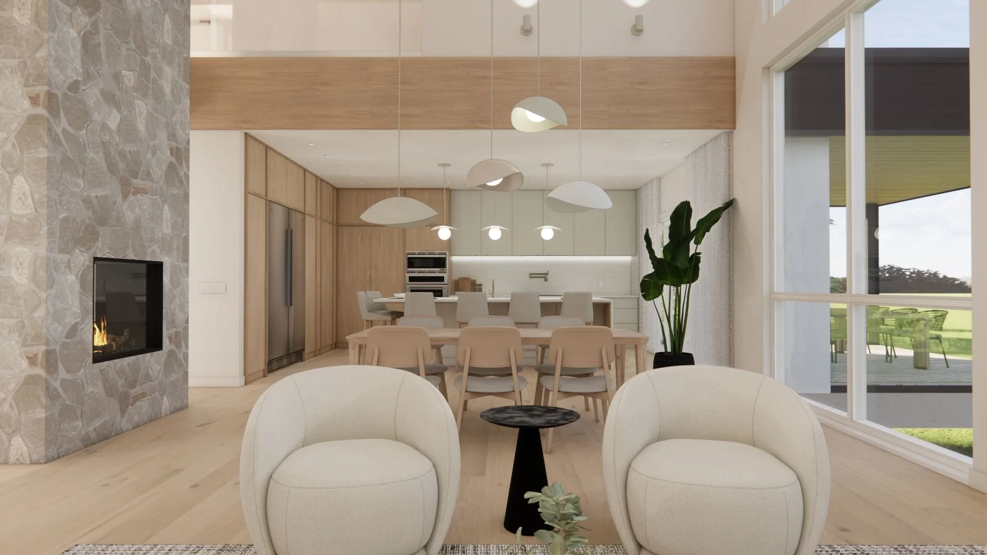 L’aire ouverte a été imaginée pour offrir une circulation fluide et une ambiance chaleureuse, où chaque zone trouve naturellement sa place. L’organisation de l’espace favorise la convivialité tout en maintenant une belle cohérence visuelle entre la cuisine, la salle à manger et le salon. Les volumes et la lumière s’unissent pour créer un lieu à la fois fonctionnel et empreint de douceur.